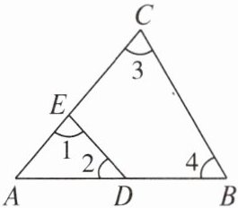 4. 如图,在△ABC中,∠A= 50°,点D,E分别在边AB,AC上,则∠1+∠2+∠3+∠4的度数为______.
