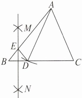 6. 如图,在 $\triangle ABC$ 中,以点 $A$ 为圆心,$AC$ 的长为半径作弧交 $BC$ 于点 $D$,再分别以点 $B$ 和点 $D$ 为圆心,大于 $\frac{1}{2}BD$ 的长为半径作弧,两弧分别交于点 $M$ 和点 $N$,连接 $MN$ 交 $AB$ 于点 $E$,连接 $DE$。若 $AB = 9$,$AC = 7$,则 $\triangle ADE$ 的周长为( )
