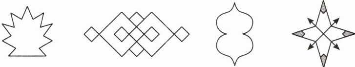 4. 指出下列轴对称图形各有几条对称轴,并把它们画出来。