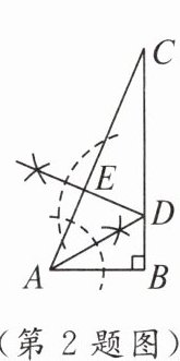 2. 如图,在 $Rt\triangle ABC$ 中,$\angle ABC = 90^{\circ}$,根据尺规作图的痕迹判断以下结论正确的是( )