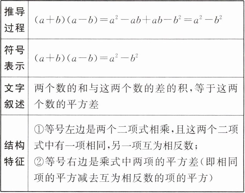 | 结构特征 | ①等号左边是两个二项式相乘,且这两个二项式中有一项相同,另一项互为相反数;