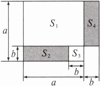 由图形可得 $S_1 + S_2 + S_3 = a^2$,$S_1 + S_4 = (a + b)(a - b)$,$S_2 = S_4$,所以 $S_1 + S_2 = (a + b)(a - b)$.
