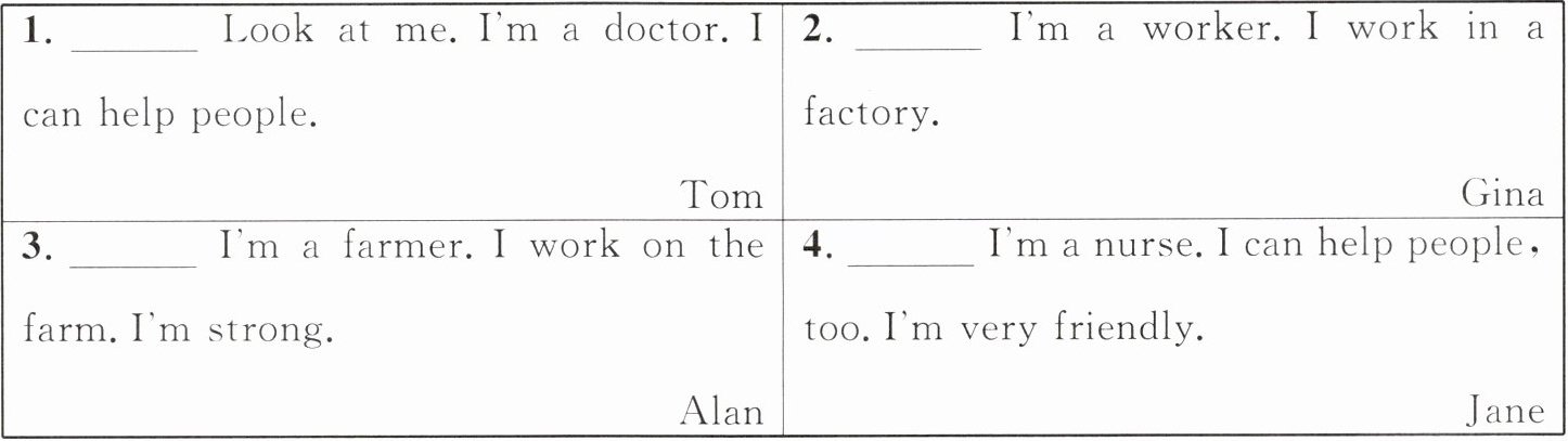 I'm a nurse. I can help people, too. I'm very friendly.||Alan|Jane|