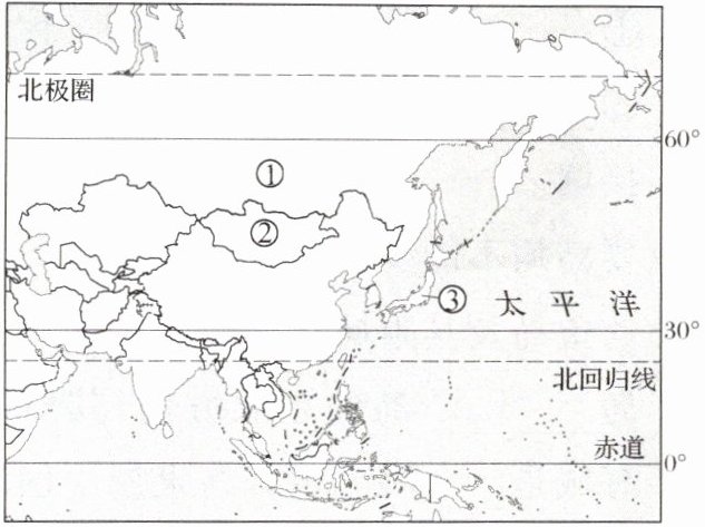 A. 太平洋东岸、亚欧大陆东部 B. 大西洋西岸、亚欧大陆东部