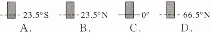 2. 下列示意图阴影部分能正确体现中国纬度位置的是( )