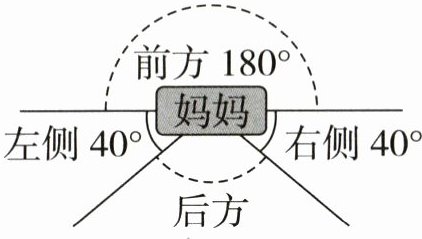 6. 妈妈正对车内后视镜观察到汽车后视镜情况如图所示,则后方可以被观察到的角度是( )。