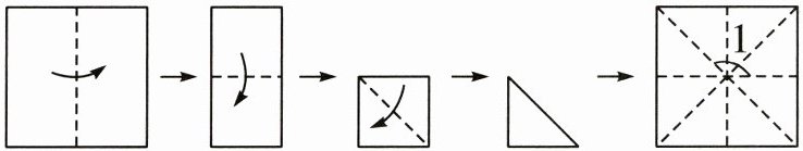 2. 把一张正方形纸按照下列步骤,沿着虚线对折(如图),展开后,∠1 是 45°。( )