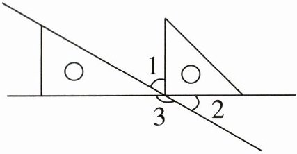 6. 如图,沿着直线摆放一副三角尺,则$\angle$1= ( )、$\angle$2= 、$\angle$