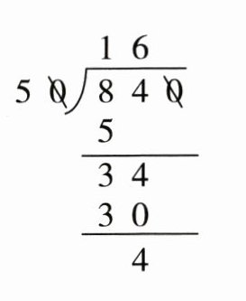 5. 某公司计划将840辆自行车投放到闹市区,如果每辆货车一次最多只能运50辆自行车,根据右面的竖式计算情况,下面的说法正确的是( )。