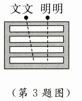 3. 文文和明明在父母的陪同下外出游玩自觉遵守交通规则,如图,( )过马路的路程短。