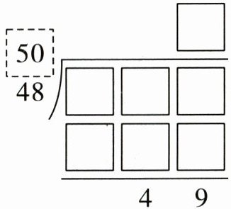 7. 右面算式,除数估成50后商会偏( )(填“大”或“小”),调商后,正确的余数是( )。