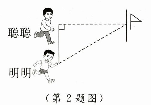 2. 聪聪和明明用同样的速度按如图所示的路线向终点跑去,聪聪先到达终点。 ( )