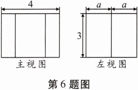 6. 如图是一个正六棱柱的主视图和左视图,则图中的$a= $