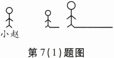 7. (1)如图,小赵和路人在路灯下行走,试确定图中路灯灯泡的位置,并画出小赵在灯光下的影子;
