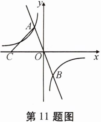 11. 如图,正比例函数 $ y = -3x $ 与反比例函数 $ y = \frac{k}{x}(k \neq 0) $ 的图象交于 $ A $,$ B(1,m) $ 两点,点 $ C $ 在 $ x $ 轴负半轴上,$ \angle ACO = 45^{\circ} $。