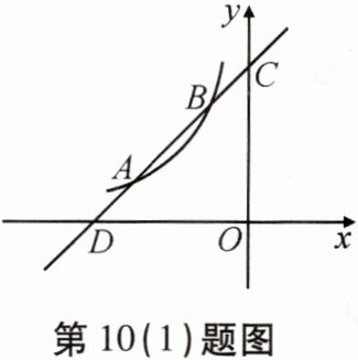 10. (1) 如图,已知直线 $ y = x + 4 $ 与双曲线 $ y = \frac{k}{x}(x < 0) $ 相交于 $ A $,$ B $ 两点,与 $ x $ 轴、$ y $ 轴分别相交于 $ D $,$ C $ 两点,若 $ AB = 2\sqrt{2} $,则 $ k = $______