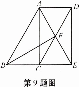 9. 如图,在$□ ABCD$中,$\angle ACB= 90^{\circ}$,过点$D作DE\perp BC交BC的延长线于点E$,连接$AE交CD于点F$.
