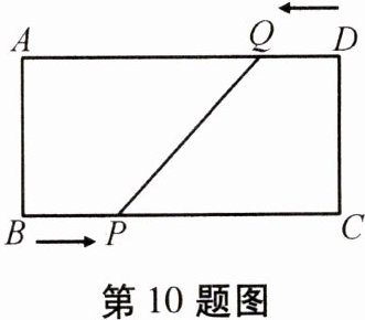 10. 如图,在矩形$ABCD$中,$BC= 20cm$,点$P和点Q分别从点B和点D$出发,按逆时针方向沿矩形$ABCD$的边运动,点$P和点Q的速度分别为3cm/s和2cm/s$,则最快