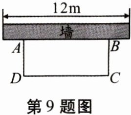 9. 如图,科技小组准备用材料围建一个面积为60$ m^2 $的矩形科技园ABCD,其中一边AB靠墙,墙长为12m,设AD的长为xm,DC的长为ym.