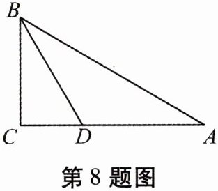 8. 如图,在 $ Rt \triangle ABC $ 中,$ \angle C = 90^{\circ} $,$ \tan A = \dfrac{\sqrt{3}}{3} $,$ \angle ABC $ 的平分线 $ BD $ 交 $ AC $ 于点 $ D $,$ CD = \sqrt{3} $,求 $ AB $ 的长。