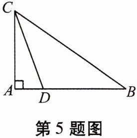 5. 如图,在 $ Rt \triangle ABC $ 中,$ \angle A = 90^{\circ} $,点 $ D $ 在边 $ AB $ 上,连接 $ CD $。若 $ BD = CD $,$ \dfrac{AD}{BD} = \dfrac{1}{3} $,则 $ \tan B = $