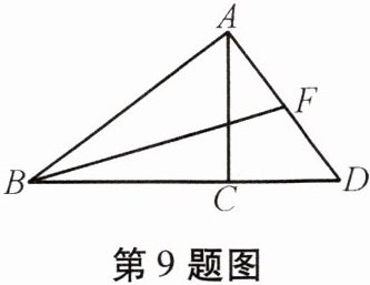 9. 如图,已知 $ \triangle ABD $ 中,$ AC \perp BD $,$ BC = 8 $,$ CD = 4 $,$ \cos \angle ABC = \dfrac{4}{5} $,$ BF $ 为 $ AD $ 边上的中线。