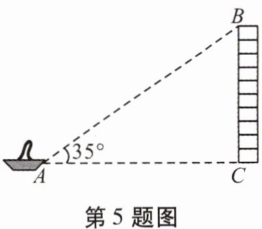5. 如图,从一艘船的点A处观测海岸上高为41m的灯塔BC(观测点A与灯塔底部C在同一个水平面上),测得灯塔顶部B处的仰角为35°,则观测点A到灯塔BC的距离约为