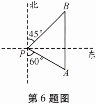 6. 如图,一艘轮船位于灯塔P的南偏东60°方向,距离灯塔50海里的A处,它沿正北方向航行一段时间后,到达位于灯塔P的北偏东45°方向上的B处,此时B处与灯塔P的距离为