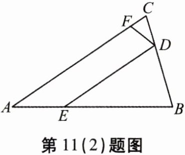 (2) 如图,在 $ \triangle ABC $ 中, $ AB = AC $,点 $ D $ 在 $ BC $ 上, $ DE // AC $,交 $ AB $ 于点 $ E $,点 $ F $ 在 $ AC $ 上, $ DC = DF $,若 $ BC = 3 $, $ EB = 4 $, $ CD = x $, $ CF = y $,求 $ y $ 与 $ x $ 之间的函数关系式,并写出自变量 $ x $ 的取值范围。