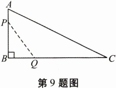 9. 如图,在 $ \triangle ABC $ 中, $ \angle B = 90^{\circ} $, $ AB = 12 $, $ BC = 24 $,动点 $ P $ 从点 $ A $ 开始沿边 $ AB $ 以每秒 $ 2 $ 个单位长度的速度向终点 $ B $ 移动,动点 $ Q $ 从点 $ B $ 开始沿边 $ BC $ 以每秒 $ 4 $ 个单位长度的速度向终点 $ C $ 移动。如果点 $ P $, $ Q $ 分别从点 $ A $, $ B $ 同时出发,那么 $ \triangle PBQ $ 的面积 $ S $ 随出发时间 $ t $(秒)如何变化?写出函数关系式及 $ t $ 的取值范围。