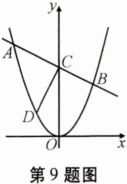 9. 如图,直线$y= -\frac{1}{2}x+b与抛物线y= ax^{2}交于A$,$B$两点,交$y轴于点C$,已知点$A的坐标为(-4,8)$。