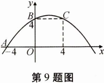 9. 如图,在直角坐标系中,二次函数的图象经过 $ A(-4,0) $,$ B(0,4) $,$ C(4,4) $ 三点。