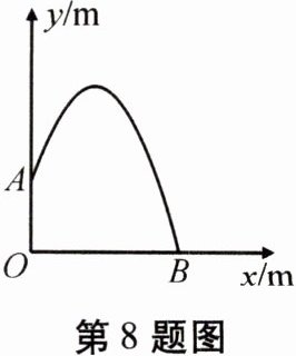 8. 如图,某小区花园新安装了一排音乐喷泉装置,其中位于中间的喷水装置$OA$的喷水能力最强,水流在各个方向上沿形状相同的抛物线路径落下,若喷出的水流高度为$ym$,水流与$OA之间的水平距离为xm$,则$y与x$之间满足二次函数关系. 经测量,喷水装置$OA的高度为3.5m$,水流最高处离喷水装置$OA的水平距离为3m$,离地面的竖直距离为$8m$.