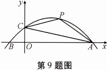 9. 如图,抛物线 $ y = -\frac{1}{12}x^{2} + \frac{2}{3}x + \frac{5}{3} $ 与 $ x $ 轴交于 $ A,B $ 两点,与 $ y $ 轴交于点 $ C $。若点 $ P $ 是线段 $ AC $ 上方的抛物线上一动点,当 $ \triangle ACP $ 的面积取最大值时,求点 $ P $ 的坐标。
