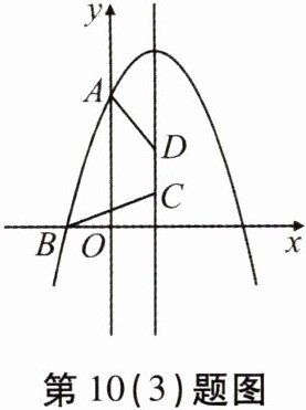 (3) 如图,抛物线$y= -x^{2}+2x + 3与y轴交于点A$,与$x轴的负半轴交于点B$,线段$CD$在抛物线的对称轴上移动(点$C在点D$的下方),且$CD = 1$,则$AD + BC$的最小值是