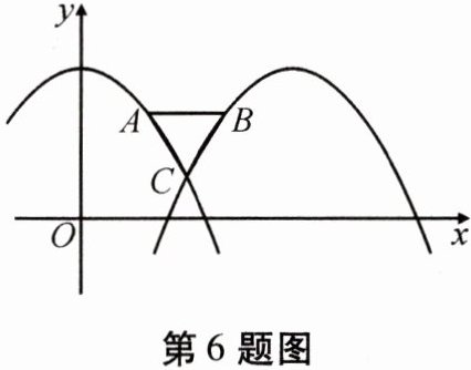 6. 如图,将抛物线 $ y_1 = ax^2 + k $ 向右平移6个单位得到抛物线 $ y_2 $,两抛物线交于点 $ C $,在抛物线 $ y_1 $ 上取一点 $ A $,点 $ A $ 在点 $ C $ 左侧,过点 $ A $ 作 $ x $ 轴的平行线,交抛物线 $ y_2 $ 于点 $ B $,若 $ AB = 2 $,且 $ \triangle ABC $ 为等边三角形,则 $ a $ 的值为