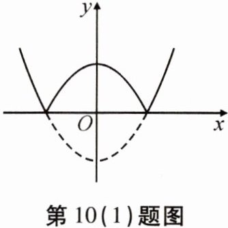10. (1) 如图,将二次函数 $ y = x^2 - 1 $ 位于 $ x $ 轴下方的图象沿 $ x $ 轴翻折,得到一个新函数的图象(实线部分). 当新函数中函数值 $ y $ 随 $ x $ 的增大而增大时,自变量 $ x $ 的取值范围是