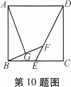 10. 如图,正方形 $ABCD$ 的边长是 $8$,点 $E$ 是 $BC$ 边的中点,连接 $DE$,点 $F$ 是线段 $DE$ 上的一个动点,连接 $BF$,点 $G$ 是线段 $BF$ 的中点,连接 $AG$,则线段 $AG$ 长的最小值为______