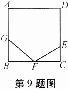 9. 如图,在正方形 $ABCD$ 中,$AB = 24cm$。点 $E$ 从点 $C$ 出发沿 $CD$ 边以 $1cm/s$ 的速度向点 $D$ 运动,同时点 $F$ 从点 $C$ 出发沿 $CB$ 边以 $2cm/s$ 的速度向点 $B$ 运动,当点 $F$ 到达点 $B$ 时,点 $E$ 也随之停止运动,连接 $EF$。问:在 $AB$ 边上是否存在一点 $G$,使得在某一时刻 $\triangle BFG$ 与 $\triangle CEF$ 全等?若存在,求出 $BG$ 的长;若不存在,请说明理由。