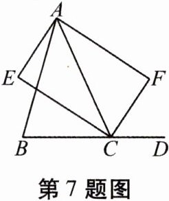 7. 如图,过 $ \triangle ABC $ 的顶点 $ A $ 分别作 $ \angle ACB $ 及 $ \triangle ABC $ 的外角 $ \angle ACD $ 的平分线的垂线,垂足分别为 $ E $,$ F $,求证:四边形 $ AECF $ 是矩形。