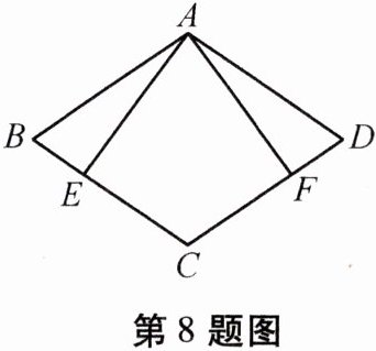 8. 如图,在菱形 $ ABCD $ 中,$ AE \perp BC $ 于点 $ E $,$ AF \perp CD $ 于点 $ F $。