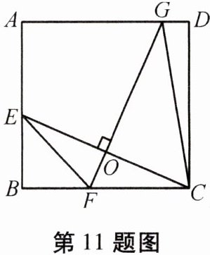 11. 如图,在正方形 $ ABCD $ 中,$ AB = 4 + 4\sqrt{2} $,$ E $ 为 $ AB $ 上一点,$ FG $ 垂直平分 $ CE $,交 $ AD $ 于点 $ G $,交 $ BC $ 于点 $ F $,交 $ CE $ 于点 $ O $,连接 $ EF $,$ CG $。