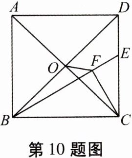 10. 如图,已知正方形 $ ABCD $ 的边长是 $ \sqrt{6} $,对角线的交点为 $ O $,点 $ E $ 在边 $ CD $ 上且 $ CE = \sqrt{2} $,$ CF \perp BE $ 于点 $ F $,连接 $ OF $,则 $ OF $ 的长为______