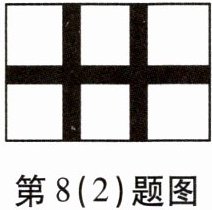 (2) 如图,在一块长 $30m$,宽 $20m$ 的矩形田地上,修建一横两竖同样宽的三条道路,把田地分成六块,种植不同品种的蔬菜,使种植蔬菜的面积为道路面积的 $3$ 倍。求道路的宽度。