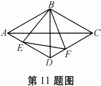11. 如图,$AC$,$BD$ 为菱形 $ABCD$ 的对角线,$\angle BAD = 60^{\circ}$,点 $E$,$F$ 分别在 $AD$,$CD$ 边上,且 $\angle EBF = 60^{\circ}$。