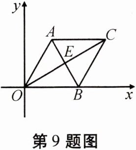 9. 如图,在平面直角坐标系中,菱形 $AOBC$ 的顶点 $O$ 在原点上,$OB$ 在 $x$ 轴的正半轴上,$B(4,0)$,$\angle ABC = 60^{\circ}$,$OC$,$AB$ 交于点 $E$。