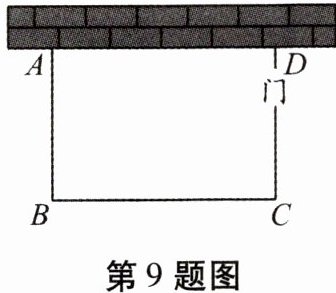 9. 某驻村工作队,为带动群众增收致富,巩固脱贫攻坚成效,决定在该村山脚下,围一块面积为$600m^{2}$的矩形试验茶园,便于成功后大面积推广. 如图所示,茶园一面靠墙,墙长$35m$,另外三面用$69m$长的篱笆围成,其中一边开有一扇$1m$宽的门(不需要篱笆). 求这个茶园的长和宽.