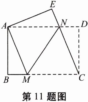 11. 如图,将一张矩形纸片 $ABCD$ 沿直线 $MN$ 折叠,使点 $C$ 落在点 $A$ 处,点 $D$ 落在点 $E$ 处,直线 $MN$ 交 $BC$ 于点 $M$,交 $AD$ 于点 $N$,连接 $CN$。