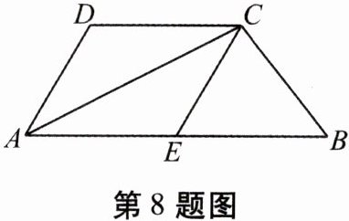 8. 如图,在四边形$ABCD$中,$AB// CD$,$AC平分\angle DAB$,$AB = 2CD$,$E为AB$的中点,连接$CE$.
