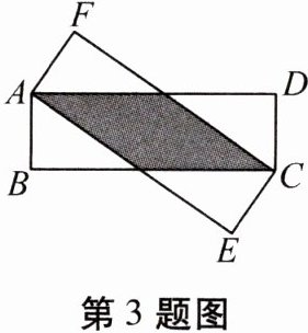 3. 两张全等的长方形纸片$ABCD$,$AECF$按如图所示方式交叉叠放在一起,$AB = AF$,$AE = BC$. 若$AB = 2$,$BC = 6$,则图中重叠(阴影)部分的面积为(